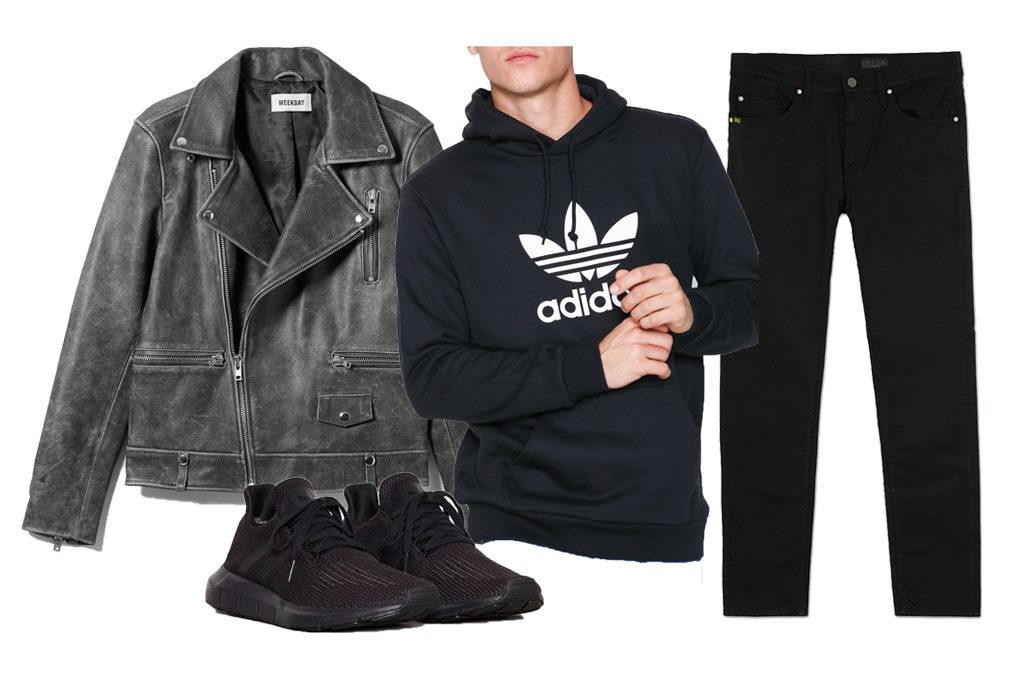 Bukse fra Tiger of Sweden – Genser fra Adidas – Skinnjakke fra Weekday – Sneakers fra Adidas