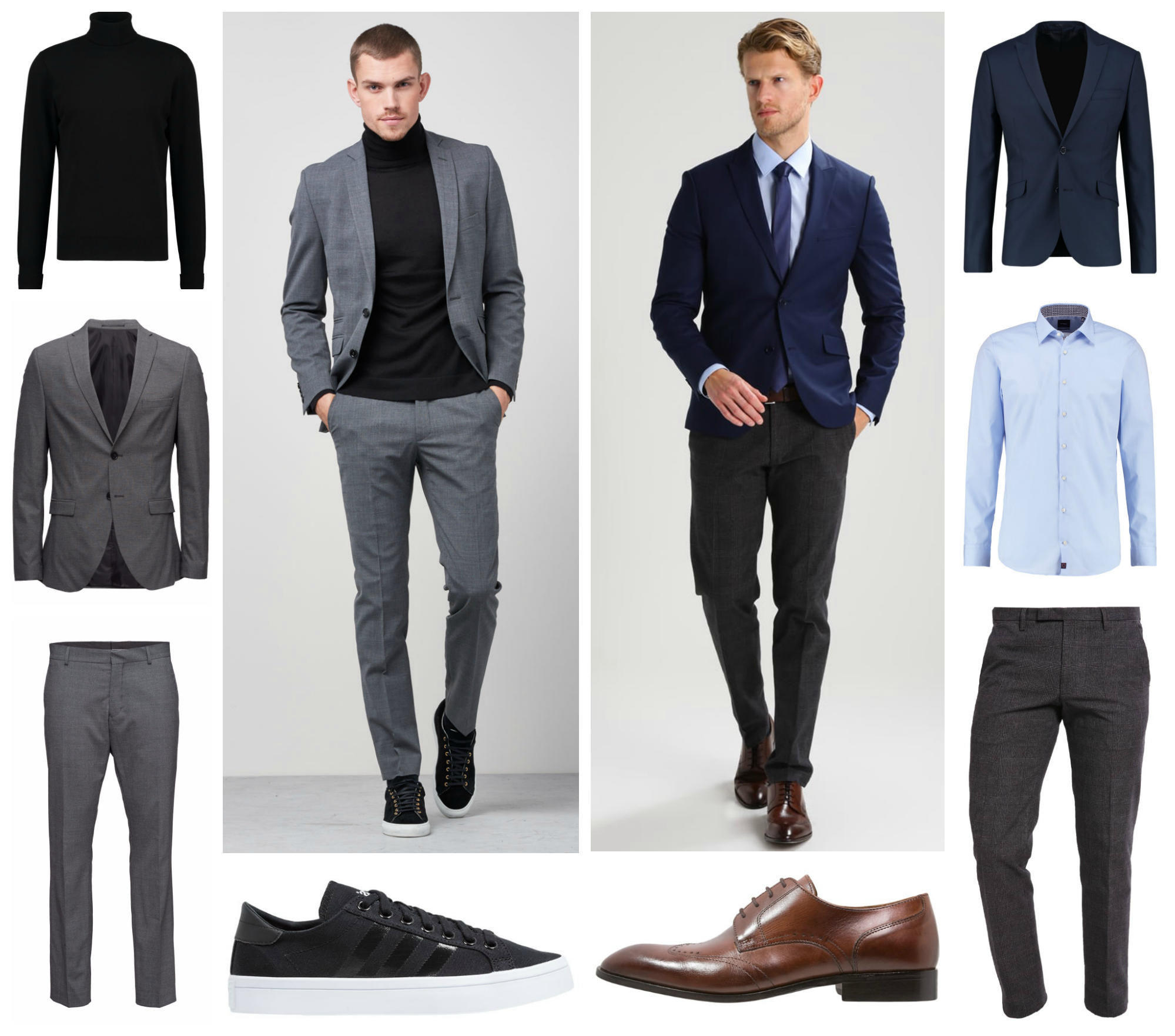 Venstre: Pologenser fra Ben Sherman– Dressjakke fra Selected Homme – Dressbukser fra Selected Homme – Sneakers fra Adidas Originals